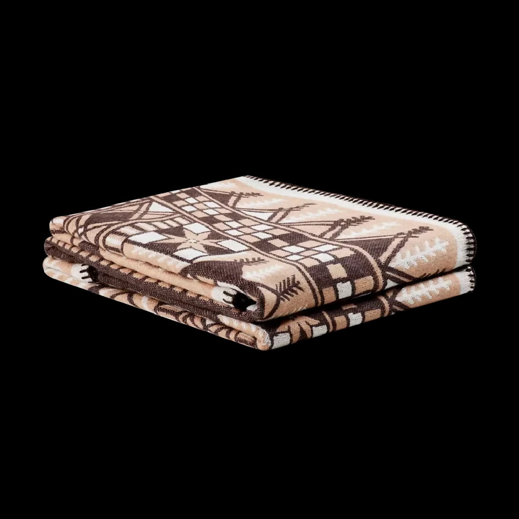 Woven from a luxurious blend of wool and silk, this throw offers comforting warmth with a soft, refined texture. Presented in an elegant Camel Bis hue and finished with classic blanket stitch edges, it is perfect for cozy moments in cooler weather. The design draws inspiration from Al Qatt Al Asiri, the vibrant traditional art form of the Asir region, celebrating generations of creativity and the enchanting beauty of misty mountains and welcoming villages.