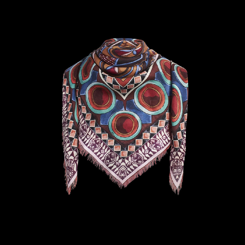 Rich with cultural symbolism, the Traditional Doors Scarf in brown & ochre channels the earthy tones and decorative engravings of the historic doors found throughout the Najd region. Crafted from a luxurious blend of silk and wool, this square scarf features soft fringed edges and celebrates one of Saudi Arabia’s most beloved traditional arts. The colors are inspired by the desert landscape and sun-warmed clay, mirroring the beauty and strength of the region’s architecture. Perfect as a headscarf, neck wrap, or shoulder drape, it’s an elegant nod to a timeless craft.